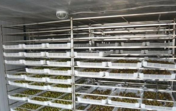 無花果整顆烘干,需要的時(shí)間較長一些,先將無花果均勻碼在物料車內(nèi),推入烘干房干燥25-30小時(shí)后,再推出烘房外陰涼的地方放置一天,再推入烘房內(nèi)進(jìn)行二次的烘干。無花果烘干機(jī)一天的烘干量視機(jī)型規(guī)格決定,少的以600-800 斤一個(gè)批次,多的2000斤一個(gè)批次,10000斤甚至更大產(chǎn)能則考慮對吹及組合方式即可。無花果干燥冷卻后還要有一個(gè)回軟的過程,注意用塑料薄膜保護(hù)好,以防細(xì)菌滋生。經(jīng)過2天左右的回軟過程即可封袋包裝入庫了。