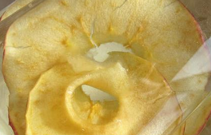 4、切片:將已經(jīng)去皮的蘋(píng)果,再經(jīng)去核機(jī)沿果核中心打成圓形孔,然后用切片機(jī)沿果實(shí)橫向切成環(huán)形片;