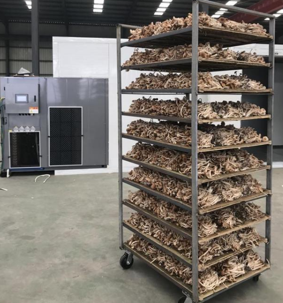 茶樹菇是一種稀有香菇。它營養豐富,含有很多人體需要的維生素和氨基酸。茶樹菇不適合保存,因為它保質期短,容易腐爛。如果需要長時間保存,則需要對其進行干燥以使含水量減少。熱泵茶樹菇烘干機的工作原理是通過吸收空氣中的熱量,再將熱量傳遞到烤房里面。茶樹菇中的水在加熱時蒸發形成水蒸氣,然后通過排濕系統排出烤房外。