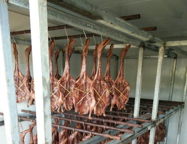 2肉制品熟化工藝是人為的提供合適的溫濕度完成物料的熟化、成分合成、轉(zhuǎn)換等過程。只有在適合的溫濕環(huán)境才能保證臘鴨的顏色和香味,否則達(dá)不到熟化的過程,那么臘鴨的香味就出不來,品質(zhì)也就降低了。